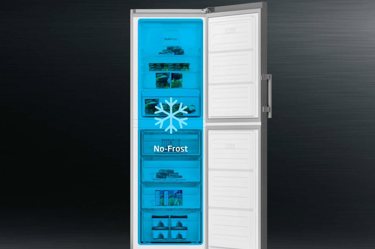 Karlanmayı önleyen teknoloji. Standart buzdolabı/dondurucu modellerinin “dondurucu” haznesi kapı açılmaları halinde içeriye giriş yapan nem ve aynı zamanda da içerisine koyulan gıdaların nemiyle dondurucu haznesinde buzlanma yaşanmasına neden olur. No frost dondurucularda fanın yardımıyla kuru ve soğuk hava soğutucu ve dondurucu haznelerinde farklı noktalardan “homojen” şekilde soğutma gerçekleştirilir. Statik urunlerden farklı olarak no frost buzdolabı/dondurucu modellerinde nem ve buz oluşumu söz konusu olmaz.